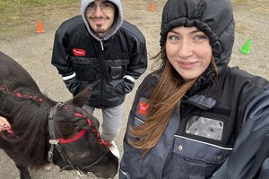 Als Nächstes stand ein Schulausflug zu einer Pferderennstrecke auf dem Plan. Dort haben wir uns mit den Schülerinnen ein Pony angeschaut, das ein paar Tricks gemacht hat – fast wie bei den Olympischen Spielen. Die Schüler fanden es großartig und das ist ja bekanntlich das Wichtigste. Hätten wir allerdings nicht so viel Eis gegessen, hätte der Wind uns heute weggefegt.