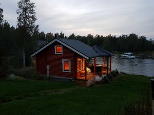 Zusammen mit Dennis und Medina fuhren wir dann zu dem Treffpunkt an dem wir uns mit Kristina treffen wollten. Sie fuhr und die restlichen 7km Voraus. Der Waldweg, den wir entlangfuhren um zu unsrer Hütte zu kommen machte uns alle Stutzig. Und Kristinas Tempo in dem sie diesen Weg entlangfuhr noch mehr. Nach einer Gefühlten Ewigkeit, durch den Wald und der Ständigen Angst, Plötzlich einen Elch vor uns stehen zu haben waren wir angekommen. Der Anblick war unbeschreiblich. Kristians Haus steht in einer kleinen Bucht der Ostsee, mit einem Kleinen Steg, einem Fass zum Baden eine Sauna, ein Kanu (dies wurde am meisten genutzt) und ein Paar Booten. Außerdem hat sie ein zweites Kleines Haus, in dem Dennis geschlafen hat. Überwältigt von unseren Wochenende Haus spielten wir noch ein paar Spiele und genossen unser (viel, viel zu Teures) Bier.
