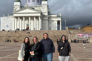 In Helsinki angekommen, trafen wir kurz darauf Janik und Marit. Gemeinsam machten wir uns auf den Weg zu unserem Hostel, wo wir unsere Koffer abgaben, bevor wir die Stadt erkundeten. Zunächst besuchten wir die Innenstadt, spazierten durch die Markthalle und besichtigten eine beeindruckende Kirche sowie den Dom von Helsinki. Insgesamt verbrachten wir etwa zwei Stunden damit, Helsinki zu erkunden, bevor wir ins Hostel zurückkehrten, um die Zimmeraufteilung vorzunehmen. Nach einer kurzen Pause trafen wir uns wieder, um gemeinsam zu Abend zu essen und uns anschließend noch ein wenig zu unterhalten. Erschöpft, aber zufrieden, gingen wir schließlich schlafen.