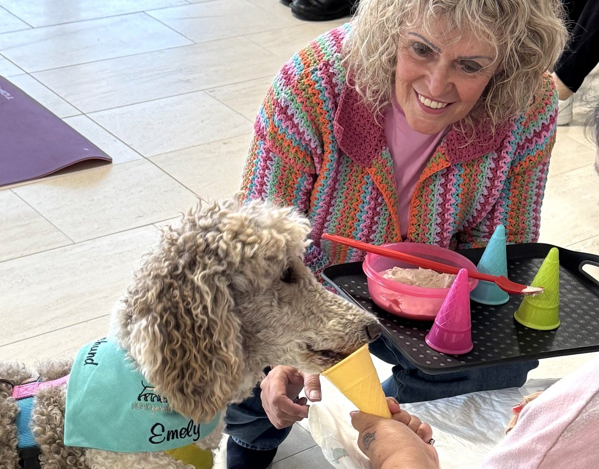 Was als Teil der Besuchshunde-Ausbildung bei „Hundgerecht“ begann, entwickelte sich für die Bewohnerinnen und Bewohner zu einem besonderen Erlebnis. Die Hunde und ihre Halterinnen und Halter gestalten lebendige Nachmittage – ob im Stuhlkreis oder bei Einzelbesuchen. Dabei werden die Tiere nicht einfach nur vorgestellt, sondern aktiv in den Nachmittag einbezogen: Die Senioren und Seniorinnen dürfen sie streicheln, kleine Kommandos geben oder einfach ihre Nähe genießen. Selbst bei zurückhaltenden Personen lösen die Hunde oft spontane emotionale Reaktionen aus und bringen so Momente der Verbundenheit und Freude in den Alltag. Auch bei Menschen mit Demenz zeigen die Hunde eine positive Wirkung.