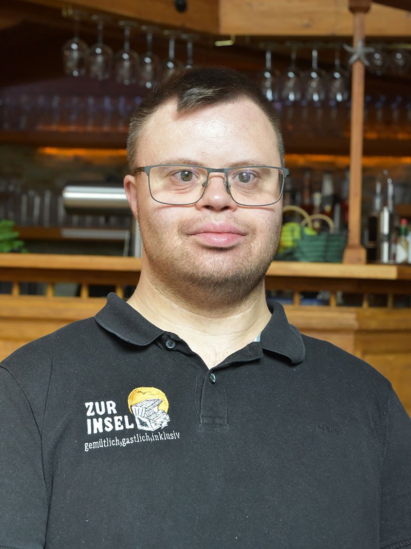 Die späten Arbeitszeiten schrecken Simon Morgenthaler nicht. Im Gegenteil: „Ich mag es, lange zu schlafen“, sagt der junge Mann, der in Eberbach in einer privat organisierten Wohngemeinschaft lebt. Bei Konzerten, die regelmäßig auf der „Insel“ stattfinden, arbeitet er gerne etwas länger. Wird es ihm zu viel, nimmt er sich eine Auszeit auf „seinem“ Stuhl am Tresen, um gleich darauf wieder ins Geschehen einzugreifen.