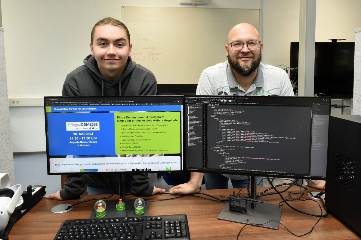 Mehr Praxisnähe geht kaum: In fünf Wochen erstellten BBW-Auszubildende im Fach Anwendungsentwicklung eine Website für die Pflegejobmesse des Neckar-Odenwald-Kreises. Die Organisatoren wollten die Messe mit einer Website stärker bewerben. Über Kontakte kam der Auftrag ans BBW. Julian Kugler war Teil des Projektteams. „Ich fand es interessant, an einem echten Kundenprojekt zu arbeiten.“ Nach pünktlichem Livegang ist Ausbilder Stefan Bautz zufrieden: „Die Auszubildenden haben sich nicht nur im Programmieren, sondern auch im Kundenkontakt geübt.“