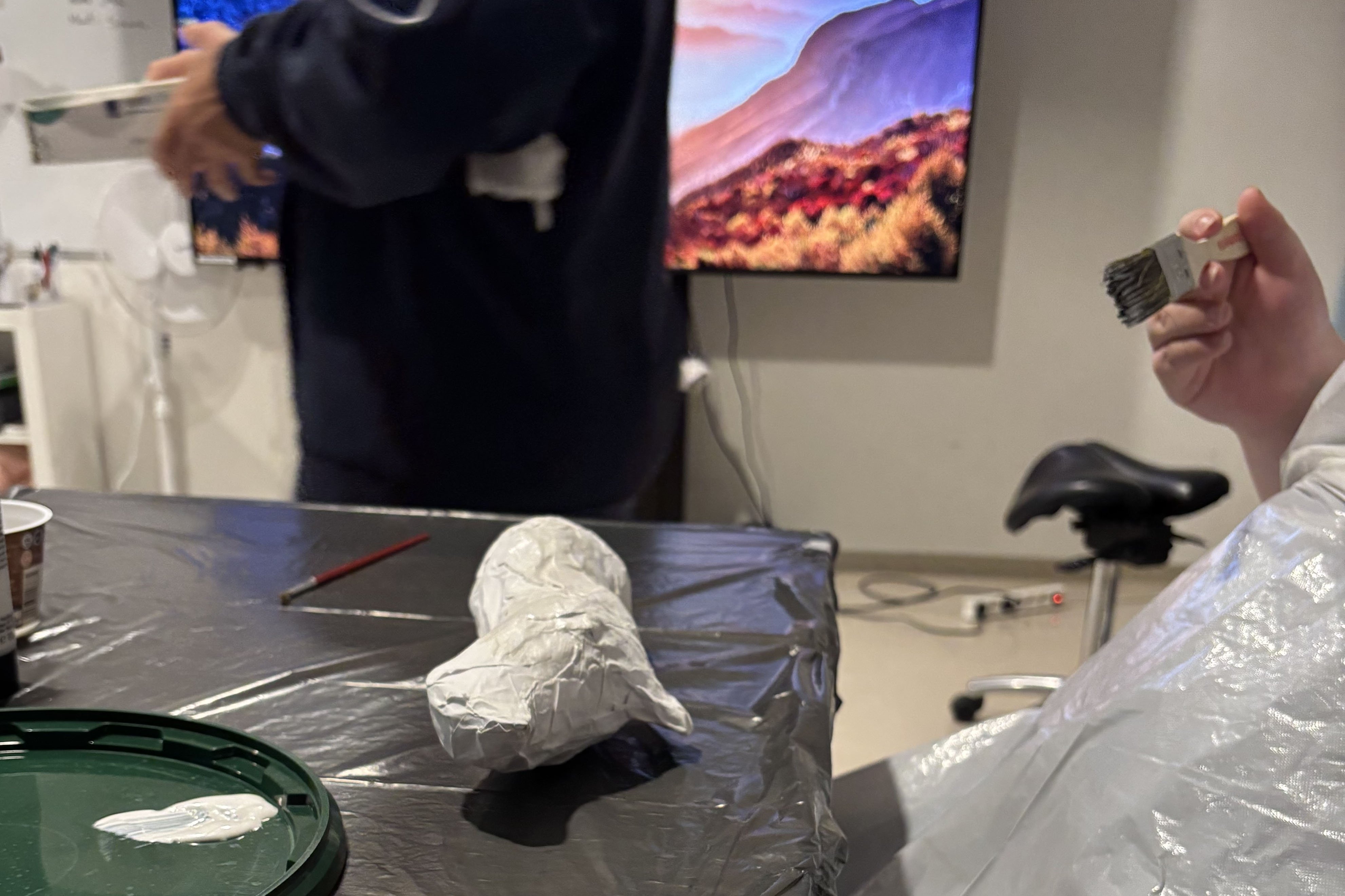 Marit hatte ihren Spaß mit den Schülern und stellte gemeinsam mit ihnen Skulpturen aus Pappe her, die später noch angemalt wurden. Kreativität pur! Janik hingegen erlebte das komplette Kontrastprogramm und konnte sehen, wie in der Werkstatt mit schwerem Gerät gearbeitet wird – was für ein spannender Einblick!