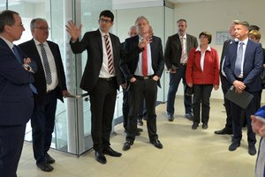 Dessen Vertreter, Ministerialdirektor Jürgen Lämmle, ordnete das Projekt ein in das Krankenhausprogramm des Landes. Dessen Ziel sei es, die stationäre Versorgung der Bevölkerung sicher zu stellen. Zu dieser Versorgung leiste die Johannes-Diakonie seit langem einen wichtigen Beitrag. „Sie stellt einen hohen Qualitätsstandard sicher und kommt den Bedürfnissen der Patienten entgegen“, sagte Lämmle. Als politische Vertreter von Bundes- und Landtag betonten die Abgeordneten Alois Gerig und Peter Hauk den wirtschaftlichen Impuls, den die Johannes-Diakonie mit der Diakonie-Klinik dem Raum um Mosbach gibt. Mit deren Neubau sei der schwierige Spagat zwischen optimaler medizinischer Versorgung und wirtschaftlicher Effizienz gelungen, erklärte der Bundestagsabgeordnete Gerig. Von einem „klaren Zeichen für den Standort Mosbach“ sprach der Landtagsabgeordnete Hauk.