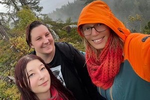 Was sie auch getan hat. Um 14 Uhr kam Rebecca bei uns an der Wohnung an und wir entschieden uns, nach einer kurzen Führung durch das AirBnB, das wir unbedingt alle, trotz schlechten Wetters, nach Koli wollten und mit dem nun vorhandenen Auto auch machen konnten. Koli ist ein üppiger Nationalpark, mit dem See Pielinen. Dieser ist der viertgrößte See Finnlands und erstreckt sich mit seinen vielen Inseln am Fuße des Koli-Gipfels. Das Gebiet wurde uns ebenfalls von allen Schüler*innen und Kolleg*innen empfohlen. Wir schlugen uns mit Rebecca wacker durch eine atemberaubende Waldlandschaft, während der Regen nicht aufhören wollte. Wir stiegen über Stock und Stein und kletterten einige Hügel hinauf, um unglaublich tolle Aussichten zu genießen. Egal wo wir waren, es herrschte eine Atmosphäre, die man nicht in Worte fassen kann. Man hätte ebenso eine Stecknadel fallen hören können. Auch wenn der Nebel durch das Unwetter, manche Wolken vor sich herschob, war der Ausblick jeden Regentropfen wert. So kamen wir auch am Ende des kleineren Wanderweges an, komplett durchnässt und hungrig. Am Gipfel befand sich ein kleines Restaurant in dem wir zusammen etwas aßen. Es gab zwei Mal Burger, einen Vurger und zum Nachtisch Schokoladenkuchen, Crème Brûlée und Rhababer-Eis mit Erdbeeren. Danach ging es nach einer einstündigen Fahrt über die finnischen Straßen wieder nach Joensuu, wo wir uns alle drei erstmal aufgewärmt und glücklich aber müde ins Bett gefallen sind.