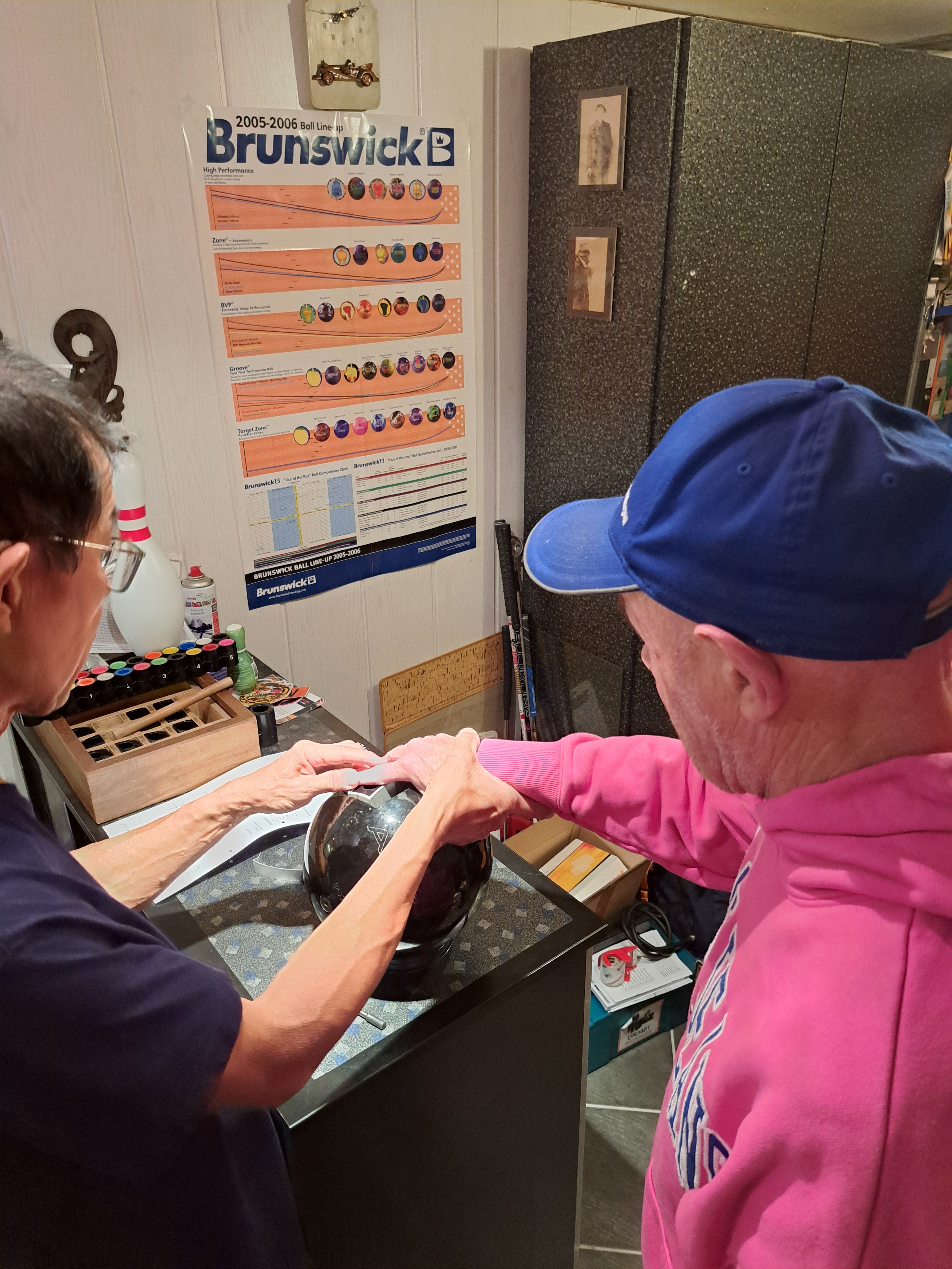 Neben dem erfolgreichen Spenden-Event sorgte ein weiteres Highlight bei den Bowlern für Begeisterung: Einige Spieler des Teams „Eener leibt“ der Johannes-Diakonie Mosbach erfüllten sich mit einem Teil des Geldes den Wunsch nach einem individuell angepassten Bowlingball. Dafür reisten sie nach Eppelheim zu Sun Kiem Kho, einem ehemaligen Bundesliga-Spieler und erfahrenen Trainer, der einen professionellen Bohrservice anbietet. Vor Ort erfuhren die Freizeitbowler Spannendes über die richtige Bohrung, verschiedene Balltypen und Wurftechniken – vom Strike- über den Spareball bis hin zu Effekten durch Drall und Rotation.