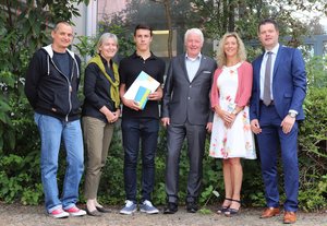 Für sein großes Engagement bekam Lukas Hemberger - im vierten Anlauf der erste männliche Preisträger - den mit 100 Euro dotierten Preis samt Buchpräsent und Urkunde von Tanja Bauer und Jörg Huber, Pädagogischer Vorstand der Johannes-Diakonie, überreicht. Glückwünsche für gab es auch von Schulleiter Jochen Herkert, dessen Stellvertreterin Marion Stoffel und Schulsozialarbeiter Manuel Zin. Stolz zeigte sich Rektor Herkert darüber, dass die Zahl der Bewerbungen für den Preis ungebrochen auch in diesem Jahr ungebrochen hoch sei.