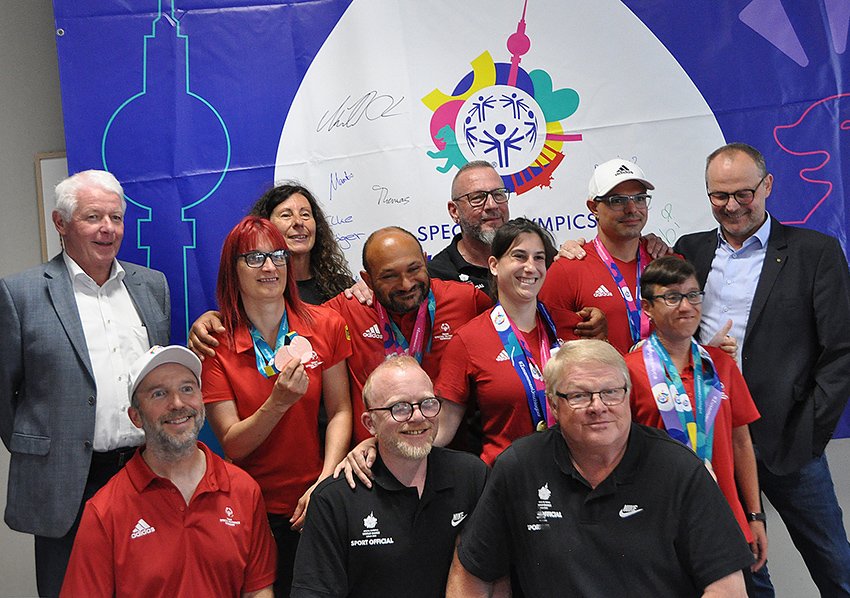 „Ihr habt Großartiges geleistet“, begrüßte Vorstand Jörg Huber die Sportlerinnen und Sportler sowie die Johannes-Diakonie-Mitarbeitenden Martin Weber, Claudia Geiger, Thomas Fraunholz und Michael Lofink, die als Trainer, Wettkampfverantwortliche und Funktionär ihren Beitrag zum Gelingen der Spiele und zu den Erfolgen des Quintetts beitrugen. „Noch nie hatten Weltspiele hierzulande eine solche gesellschaftliche und mediale Aufmerksamkeit“, wusste Huber. Eine Veranstaltung, die zum ersten Mal in Deutschland stattfand, als größte Multisportveranstaltung seit den Olympischen Spielen 1972 in München.