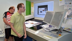 Das JO!-Team hat im Sommer die Druckerei Laub in Elztal-Dallau besucht. Wir wollten sehen, wie unser JO! gedruckt wird. Besonders beeindruckend war die riesige Druckmaschine. Wir standen davor und haben heruntergezählt: 10 – 9 – 8 – 7 – 6 – 5 – 4 – 3 – 2 – 1 – 0! Dann hat der Betriebsleiter den Druck gestartet. Es ratterte und roch nach Farbe. Mit einem Affenzahn kamen die Druckbögen aus der Maschine und wurden aufgestapelt. Dann eine andere Maschine zum Schneiden der Bögen, alle Seiten übereinander legen, heften – und fertig.
