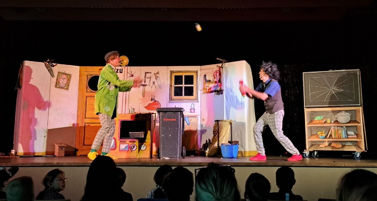 Spannend war auch ein anderes Spektakel in der Schwarzbach Schule: Die Grundstufe lernte beim Theaterstück „Freddy Fuchs in der Erfinderwerkstatt“ viel über Umweltschutz und Nachhaltigkeit. Die Darsteller zeigten mit Leidenschaft, dass auch kleine Veränderungen einen großen Unterschied machen können, wenn es darum geht, die Erde und die Lebewesen darauf zu schützen.