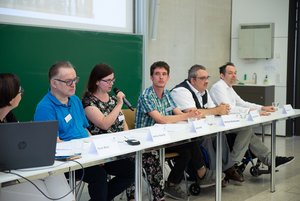 „Bildung ist ein Menschenrecht“, machte Anna Neff deutlich. Dennoch habe auch sie die Erfahrung gemacht, dass ihr der Zugang zu Bildung verwehrt wurde, dass ihr als Mensch mit einer so genannten geistigen Behinderung nichts zugetraut werde. Selbst nach ihrer Bewerbung beim Projekt „Inklusive Bildung" habe sie gesagt bekommen: „Das kannst Du nicht.“ Und Helmuth Plantzer sei als junger Mensch gesagt worden: „Lesen und Schreiben lernen brauchst du nicht.“ Alle fünf beschrieben das Gefühl, nun als Lehrende beispielsweise an Hochschulen tätig zu sein, als „befreiend", als Bestätigung, dass Menschen mit Behinderung zu weit mehr fähig sind, als die Gesellschaft ihnen zutraut. Für sie war der Schritt heraus aus einer Werkstatt für behinderte Menschen in die Qualifizierung und dann künftig als Lehrende auf den ersten Arbeitsmarkt der richtige. „Jeder ist besonders, jeder ist anders – wir sind Teil der Vielfalt“, formulierte Hartmut Kabelitz. Wobei während der Veranstaltung auch verdeutlicht wurde, wie stark die Werkstätten selbst die die Teilnahme der fünf am Projekt unterstützt hatten und noch immer tun. „Die Kooperation mit den verschiedenen Werkstätten funktioniert hervorragend“, so Projektleiter Stephan Friebe.